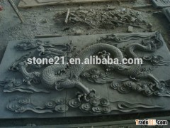 » High Polished Lotus Carved Marble Relief Sculpture